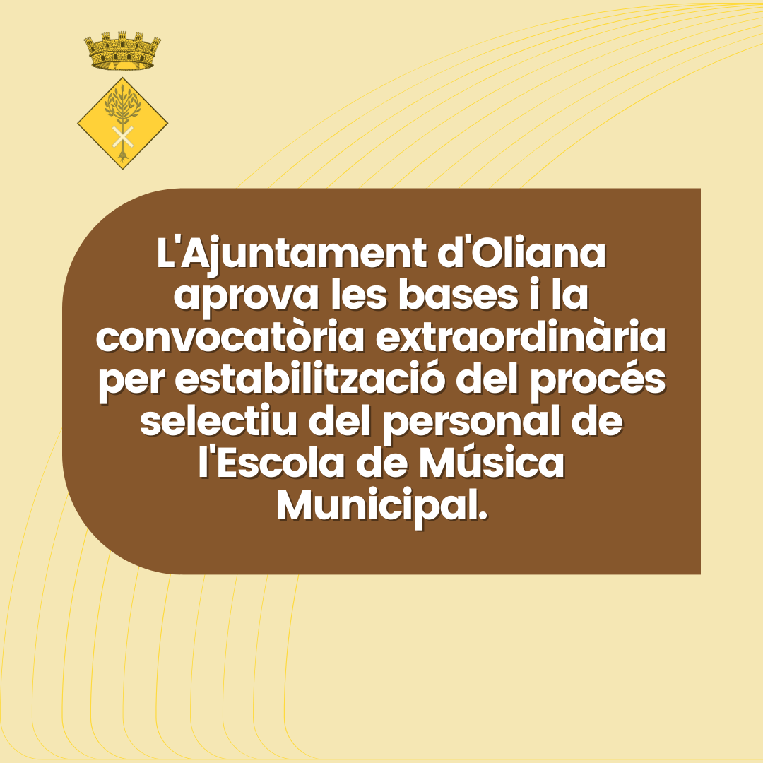 Aprovació de les bases i la convocatòria extraordinària per estabilització del procés selectiu del personal de l'Escola de Música