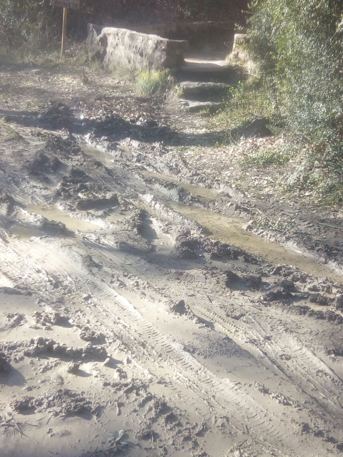 L'accés a la Font de la Roqueta, degut a les últimes precipitacions, es troba fangós. El pas de vehicles (principalment de dos rodes) ha provocat solcs que no permeten arribar amb seguretat a la Font.