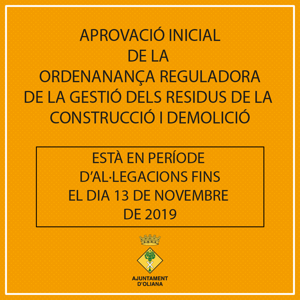 Està en període d'al·legacions fins el proper 13 de novembre de 2019 (inclós).